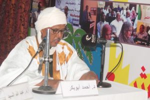 بعد ذلك تناول الكلام الدكتور أحمد أبو بكر الإمام، الحاصل على المتريز في الآداب، والماستر في ذات التخصص، و على الدكتوراه بميزة مشرف: أنجز عددا من البحوث والدراسات في مجالات الأدب واللغة، بالاضافة إلى الإشراف والمشاركة في تأليف عدد من الكتب المدرسية. وهو إلى ذلك أستاذ للنحو والصرف بجامعة المحظرة الشنقيطية الكبرى في أكجوجت.