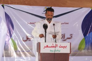 وقد ألقى أولا سيدي محمّد عبد الرّزّاق وهو شاعر مهتم بأدب الطفل، يكتبه عن وعي وإدراك برساليته إيمانا بالنشء وتربية لحسهم الإبداعي والجمالي، حاصل على الباكالوريا الأدبيّة الحديثة واللّيصانص في الجغرافيا العامّة من جامعة نواكشوط، وعلى الماستر في “المجتمع والمجال في غرب الصّحراء” من جامعة العلوم الإسلامية بمدينة العيون، وهو