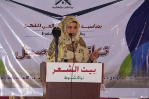 فيما ألقت ثانيا السالكة المختار السالم وهي شاعرة حاصلة على شهادة الليصانص من قسم التاريخ بجامعة انواكشوط، وشهادات إعلامية من مركز التدريب (شمعة) في نقابة الصحفيين الموريتانيين، مشتغلة بالعمل الصحفيّ والكتابيّ عموما، عضو اتحاد الكتاب والأدباء الموريتانيين ،