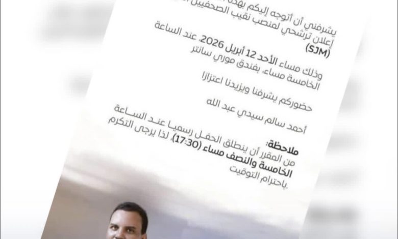 ويأتي هذا المؤتمر في إطار عرض برنامج المرشح ورؤيته لتطوير العمل النقابي وتعزيز دور الصحافة في موريتانيا، إضافة إلى فتح المجال أمام الحضور لطرح الأسئلة والاستفسارات المتعلقة بمستقبل المهنة والتحديات التي تواجهها.